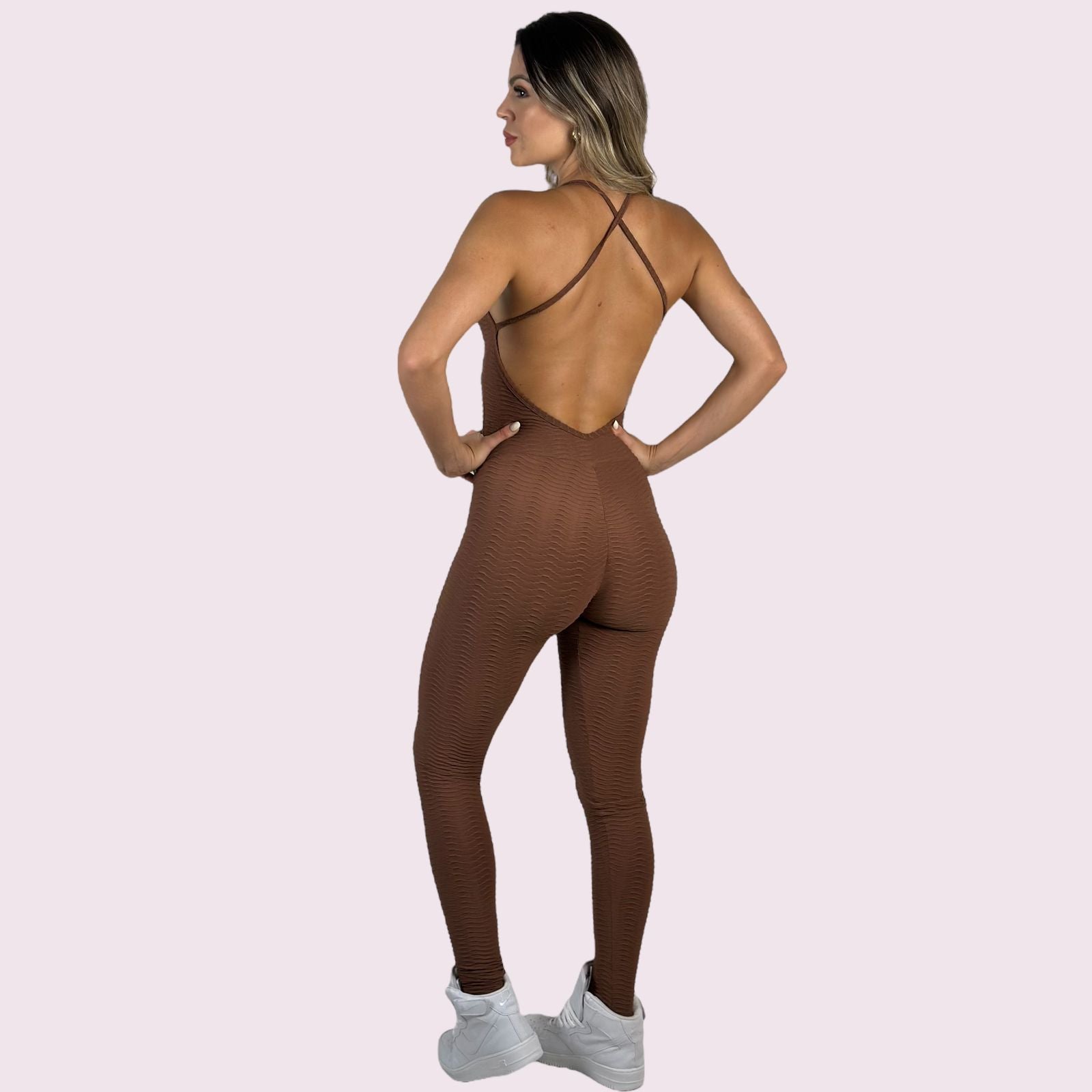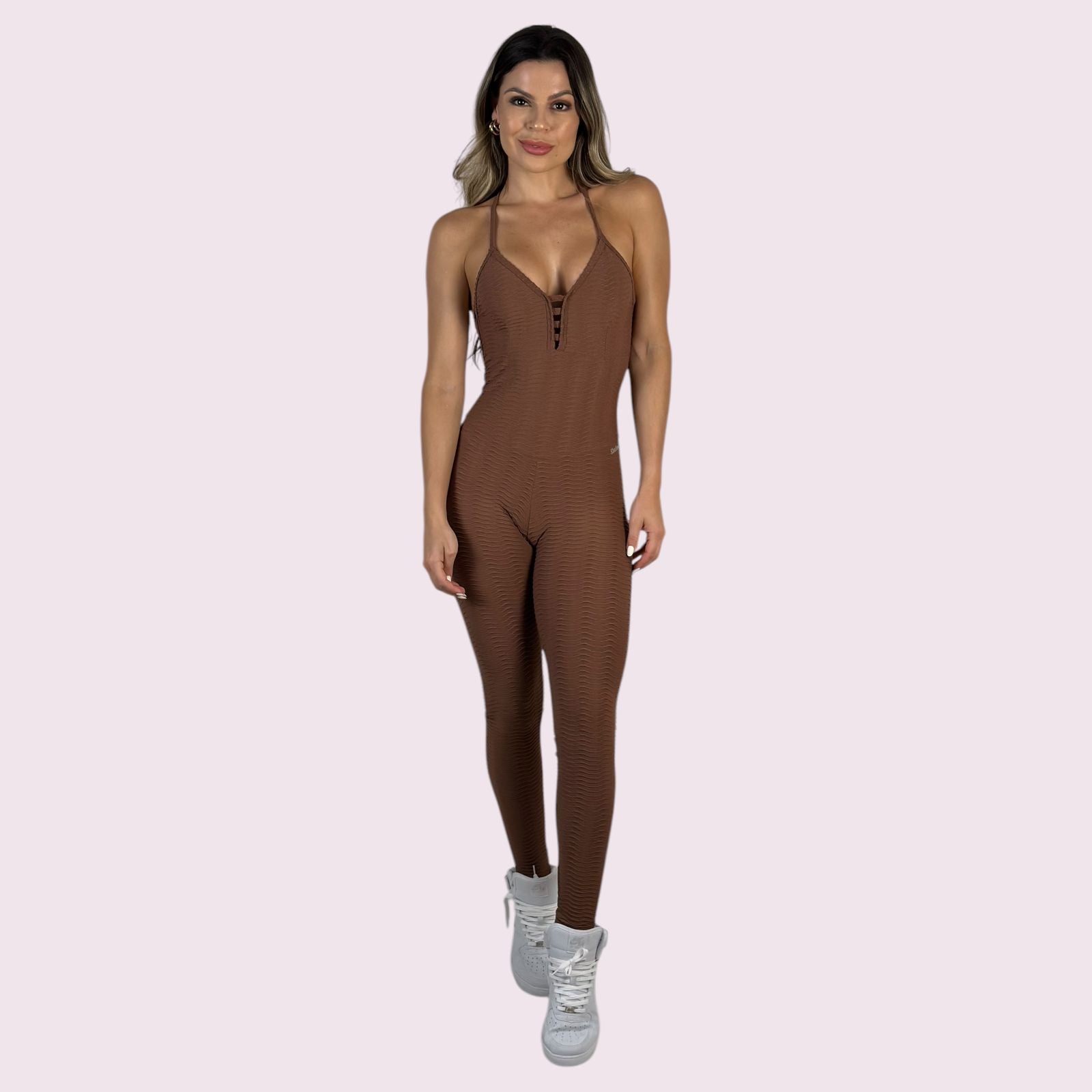Esse macacão é confeccionado com modelagem confortável em tecido de poliamida com tecnologia lycra xtra life, possui ótima elasticidade e toque macio, elásticos nas costas, garantindo sustentação e conforto para a prática de qualquer atividade física.