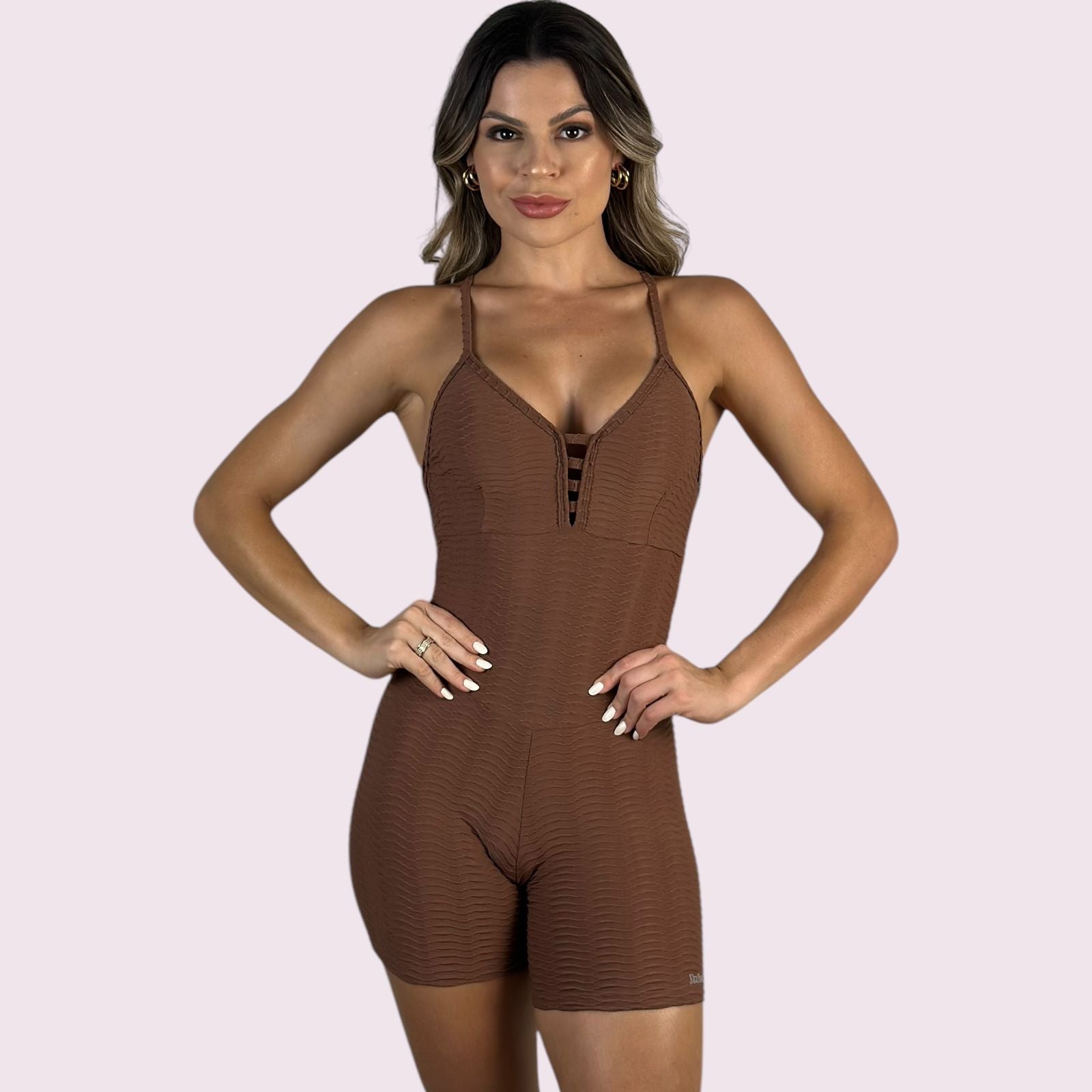 Esse macacão é confeccionado com modelagem confortável em tecido de poliamida com tecnologia lycra xtra life, possui ótima elasticidade e toque macio, elásticos nas costas, garantindo sustentação e conforto para a prática de qualquer atividade física.