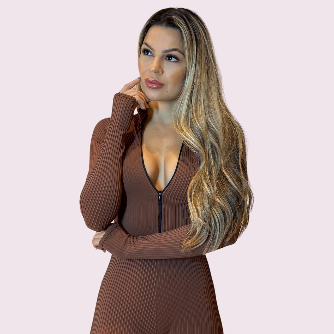 Esse macacão é confeccionado com modelagem confortável, manga longa e ziper frontal, com gola alta, em tecido de poliamida canelado com tecnologia lycra xtra life, possui ótima elasticidade e toque macio, elásticos nas costas, garantindo sustentação e conforto para a prática de qualquer atividade física.