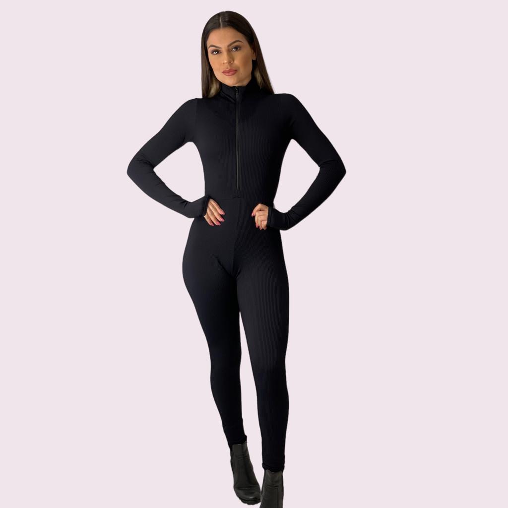 Macacão Virginia Canelado Preto