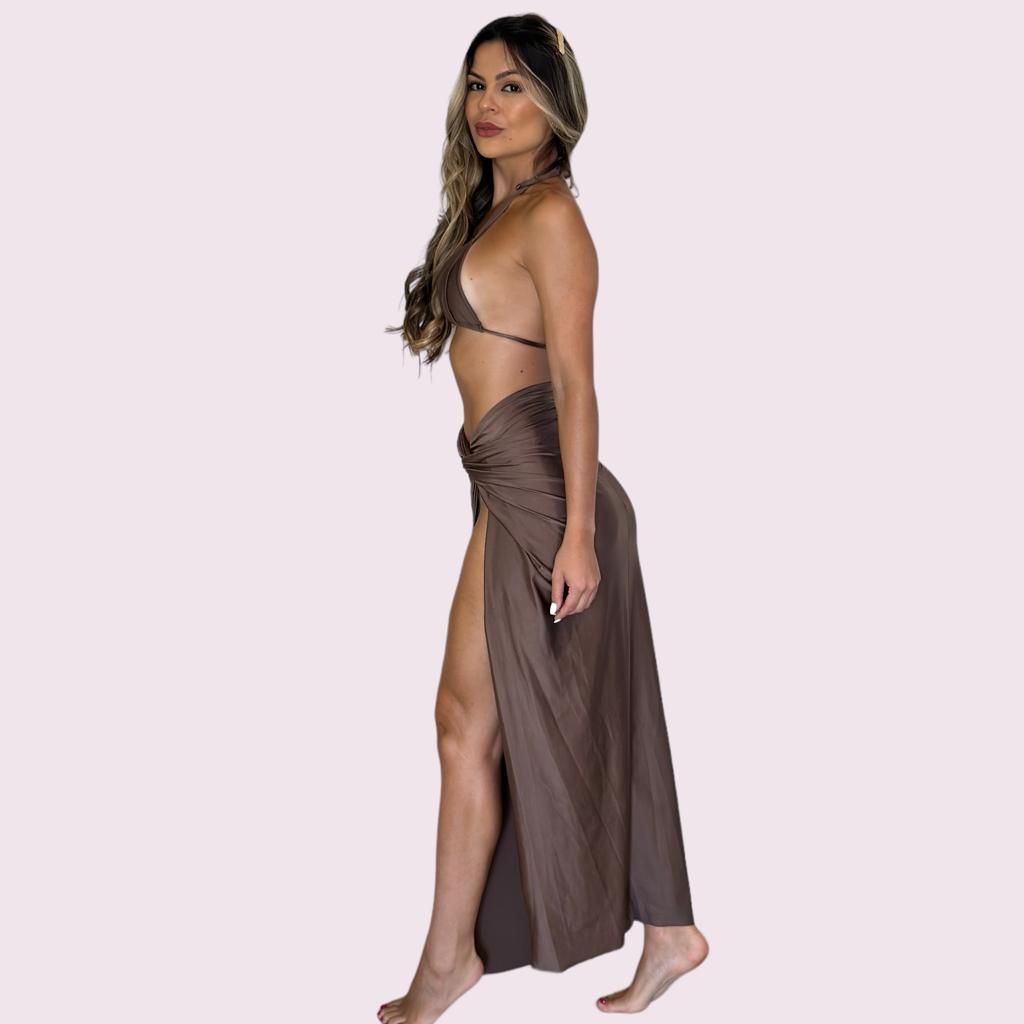 Esta saia é confeccionada com modelagem que se ajusta, através de cordão frontal. Tecido de poliamida com tecnologia xtra life, possui ótima elasticidade e toque macio.
