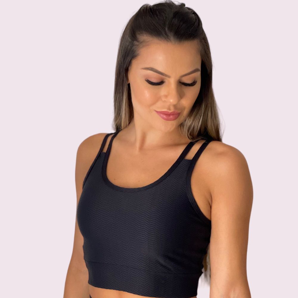 Top com alça dupla, com entrada para bojos removíveis (inclui um par de bojos), valorizando o corpo, com modelagem atraente.